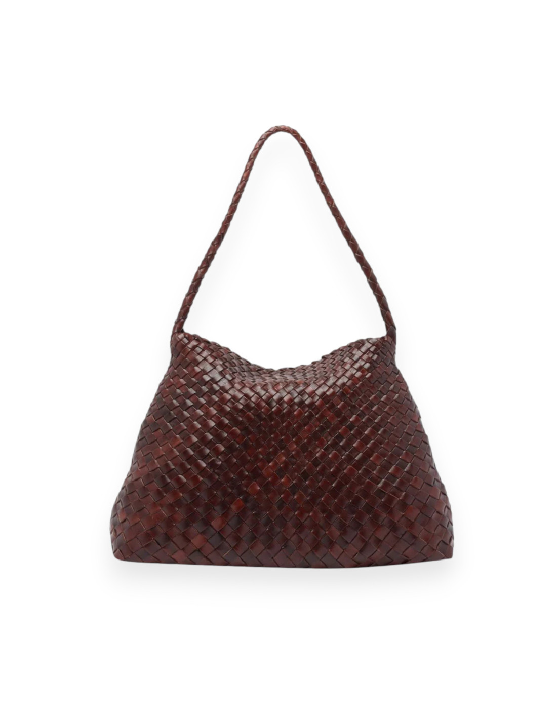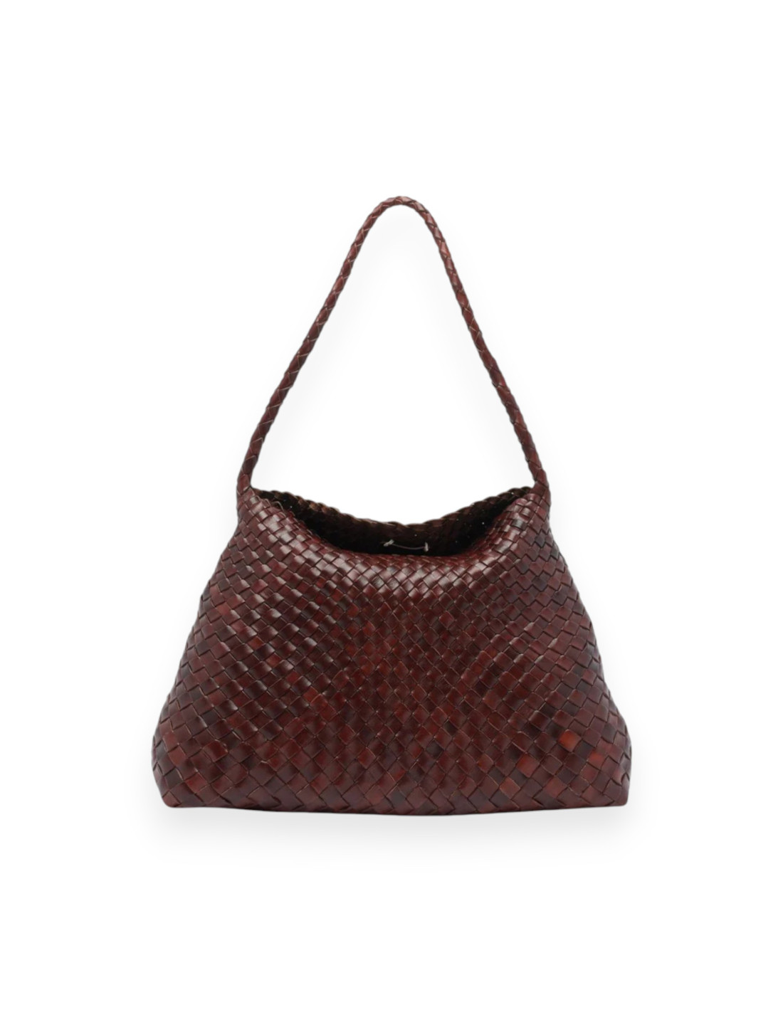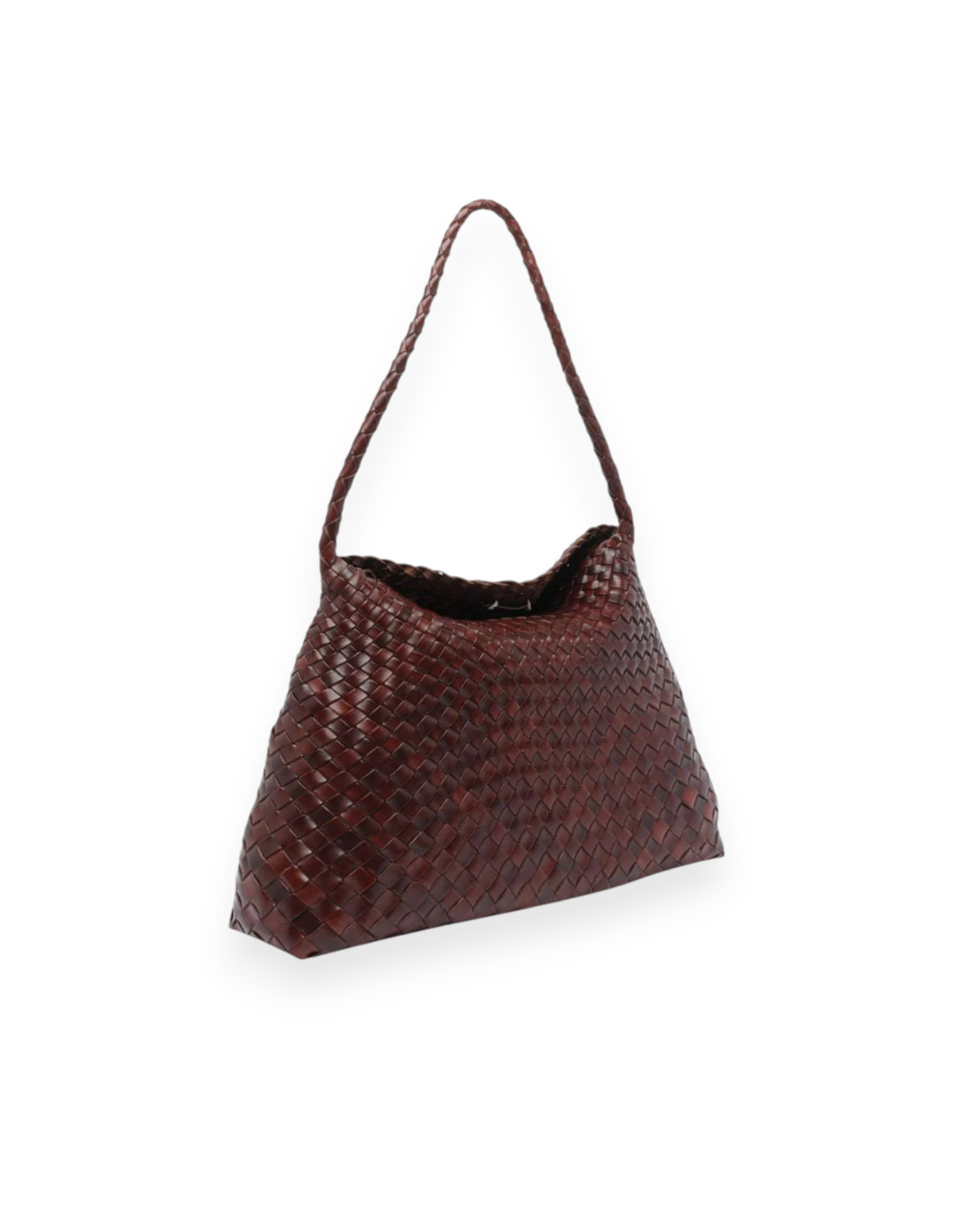 Sac cabas composé de lanières de cuir tressées et doté d'une fine anse pour un porté épaule