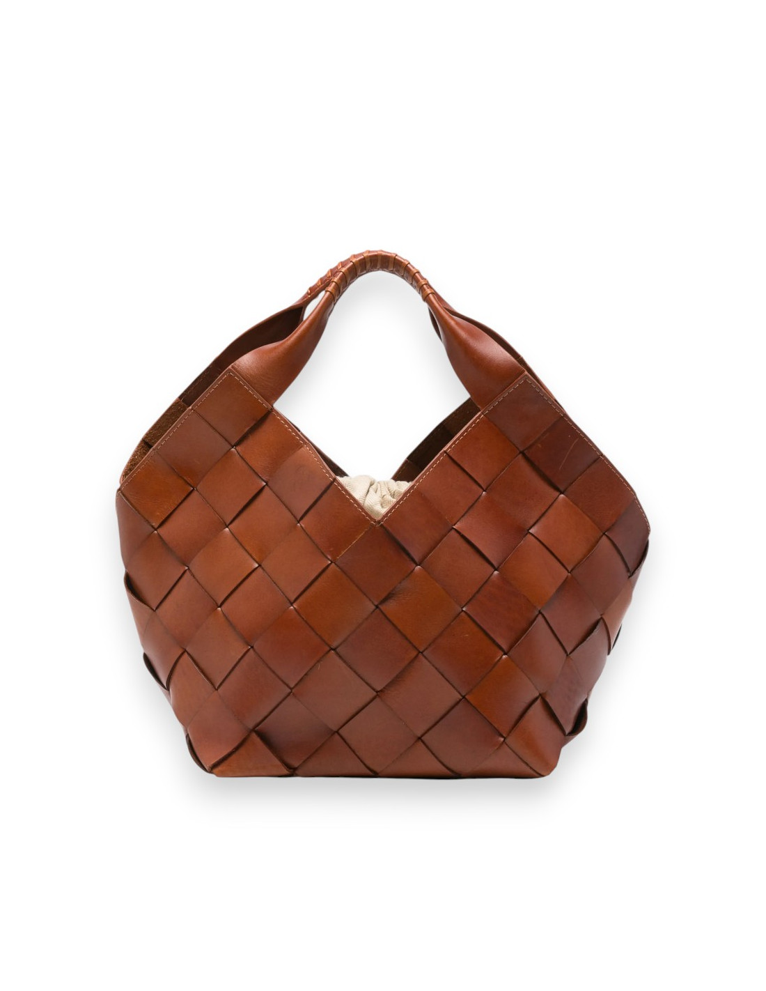 Sac cabas en cuir tressé tan