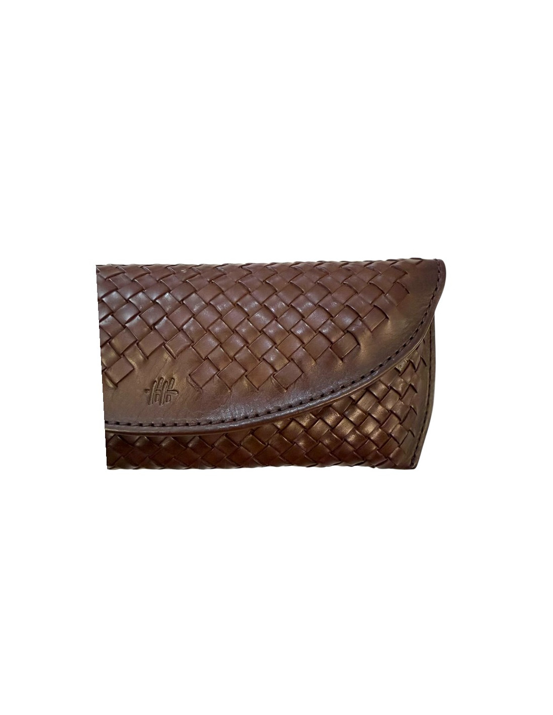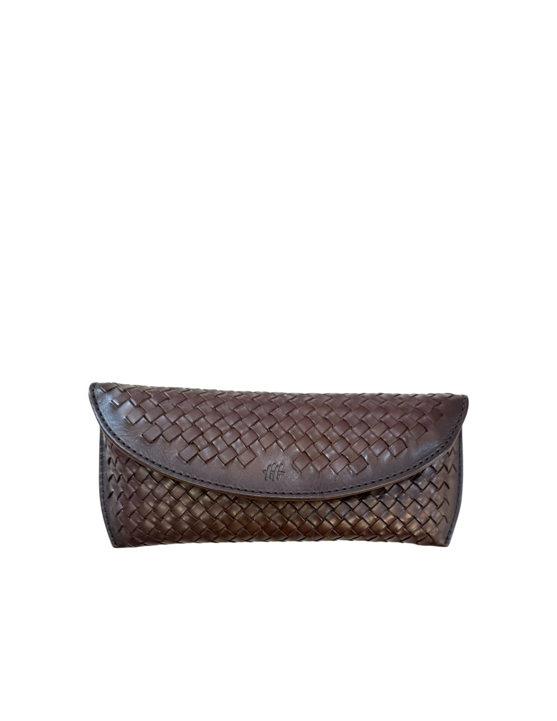 Etui à lunette en cuir tressé marron foncé
