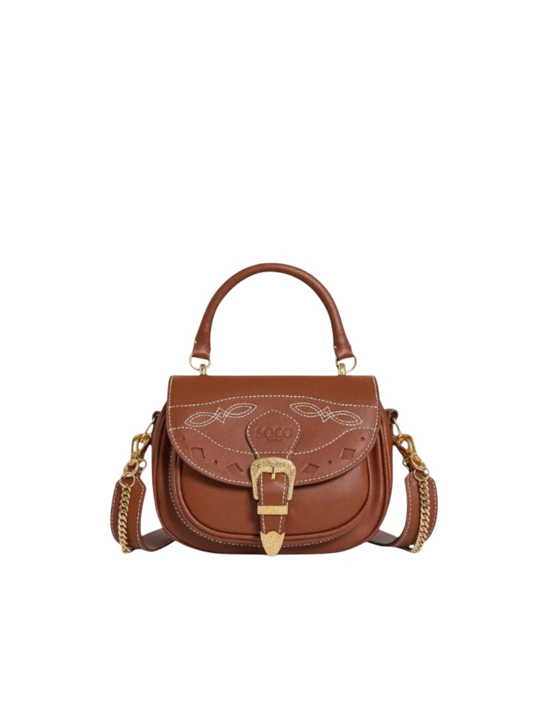 Porté main grâce à sa poignée structurée, épaule ou crossbody grâce à sa bandoulière et sa chaîne amovibles