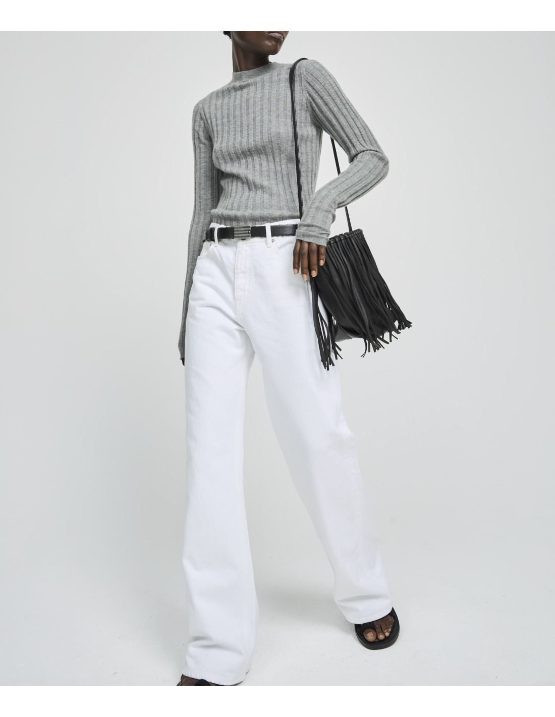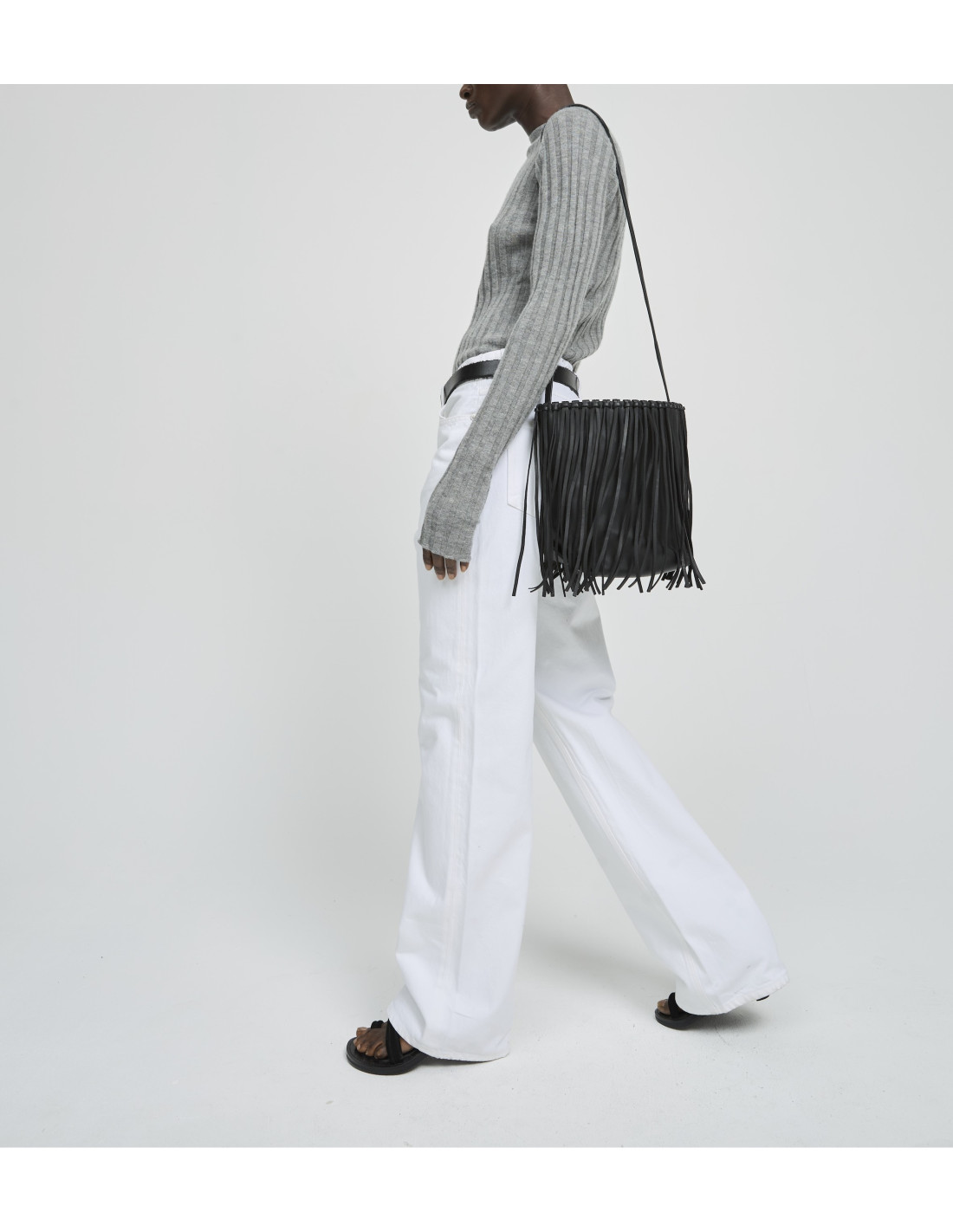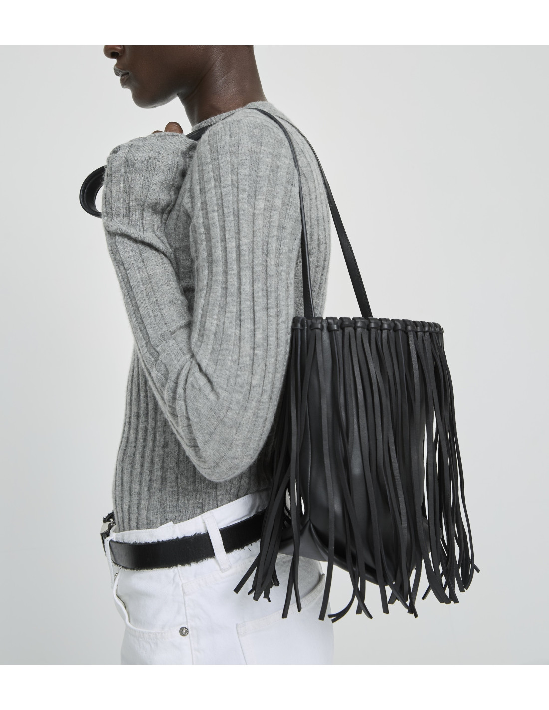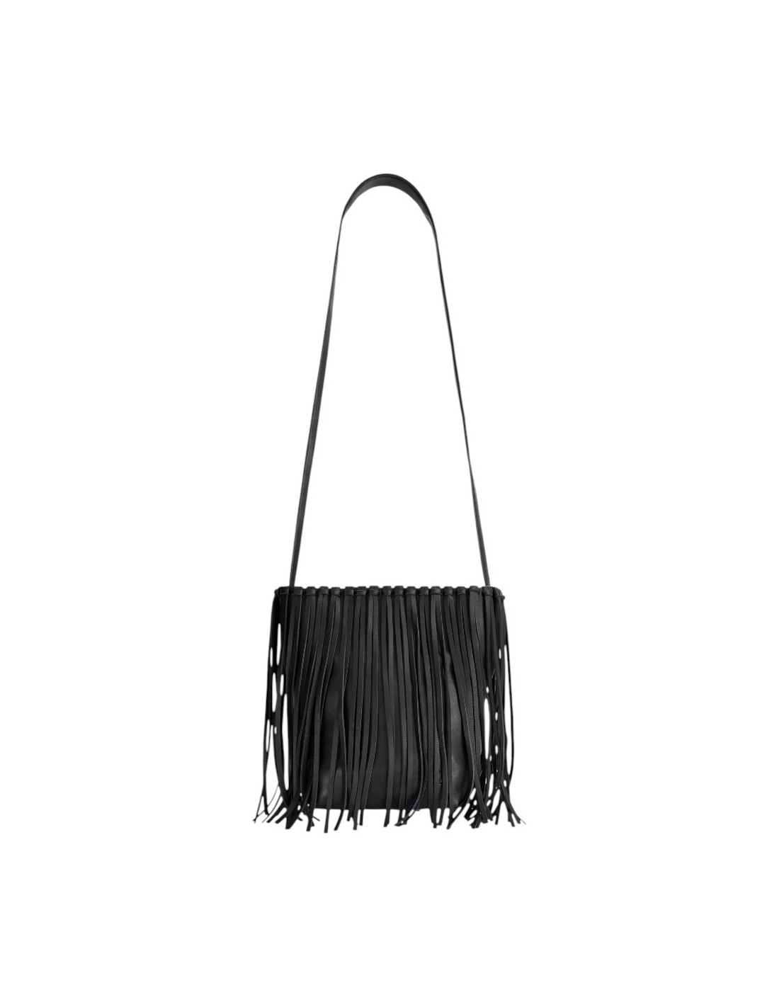 Sac besace avec franges en cuir noir
