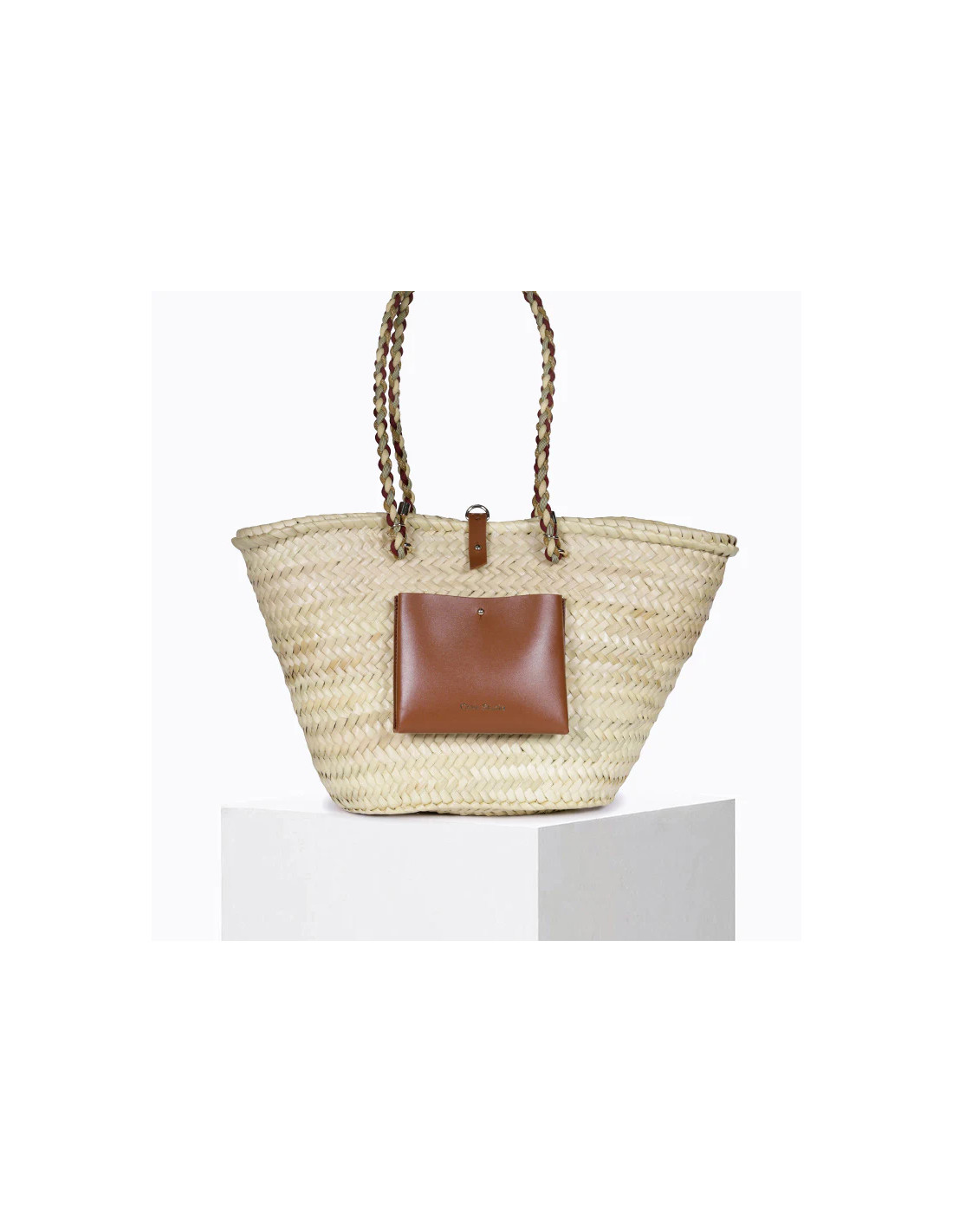 Panier en fibre naturelle de palmier et cuir marron