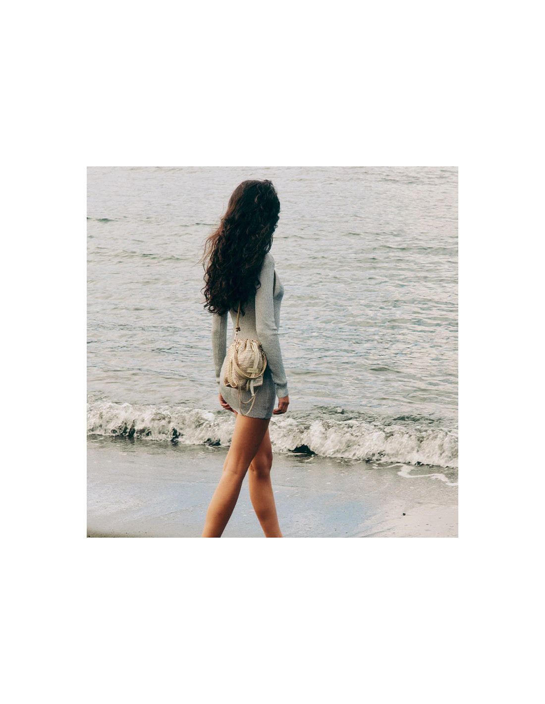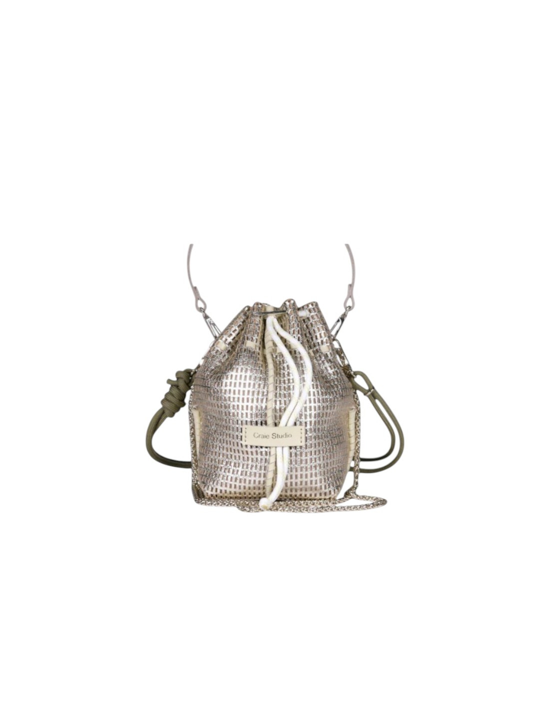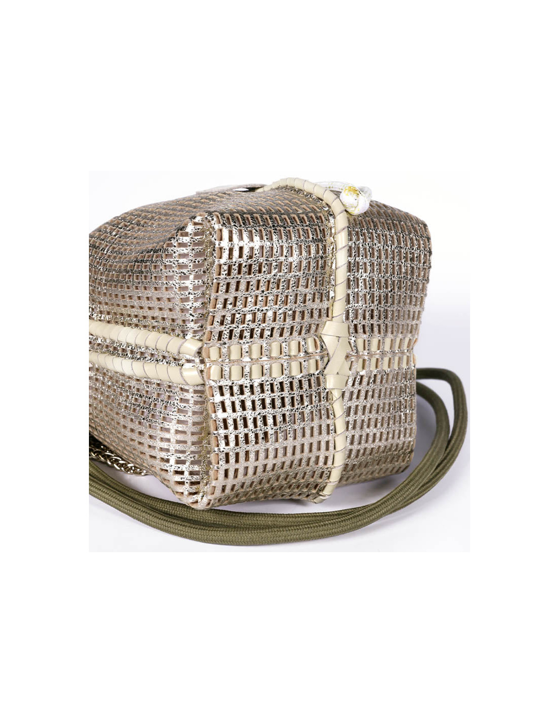 Mini sac seau en cuir d'agneau perforé or champagne cousu main
