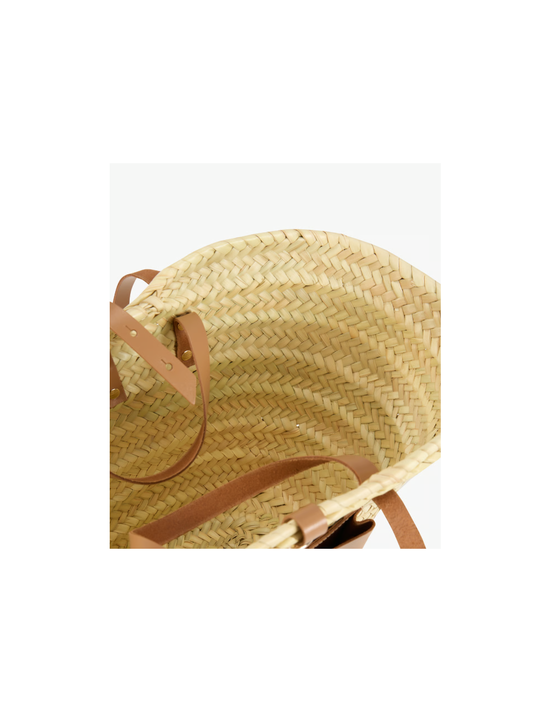 Panier tressé à la main en fibre naturelle de palmier et cuir mocha