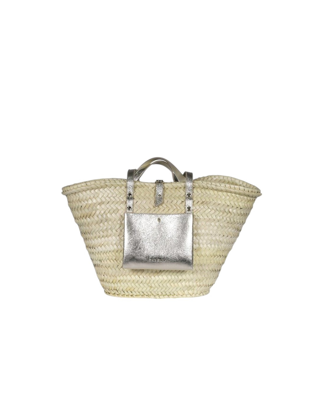 Panier fibre naturelle et cuir métallisé champagne