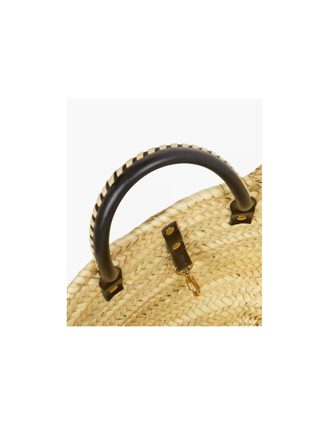 Panier tressé à la main en fibre naturelle de palmier et cuir noir et crème