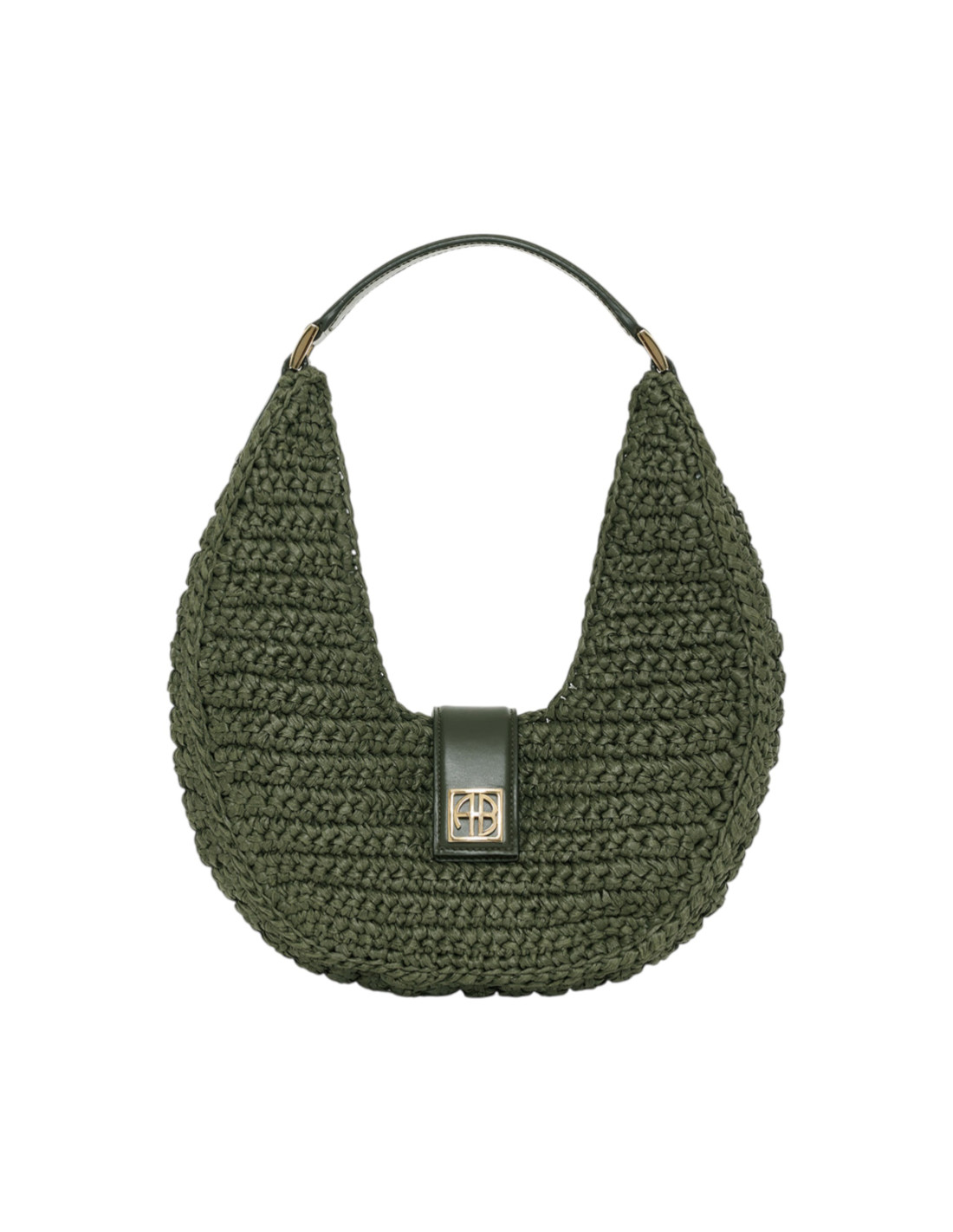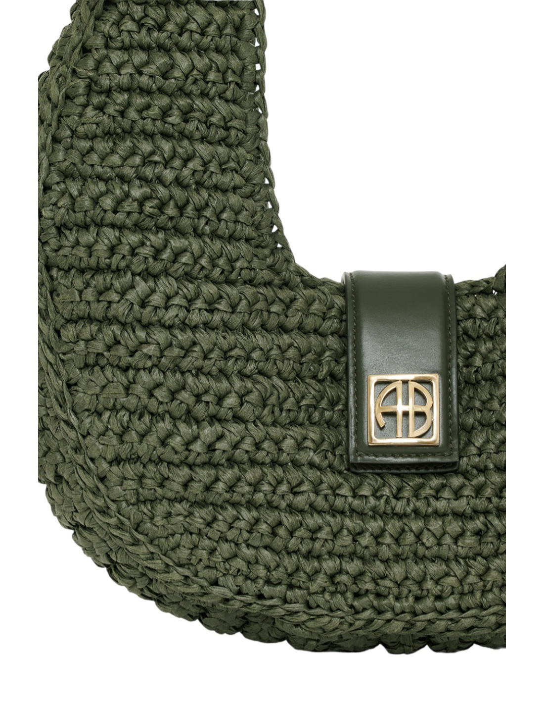 Sac à main tissé en jonc de mer vert olive avec détails en cuir ton sur ton