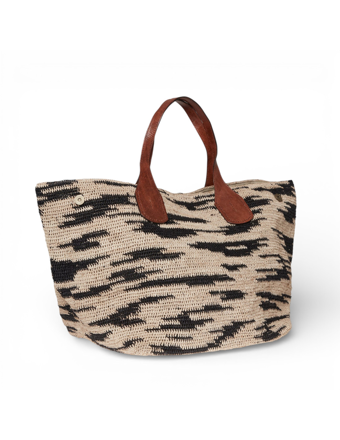 Grand sac en raphia naturel et noir, coloris Zebra