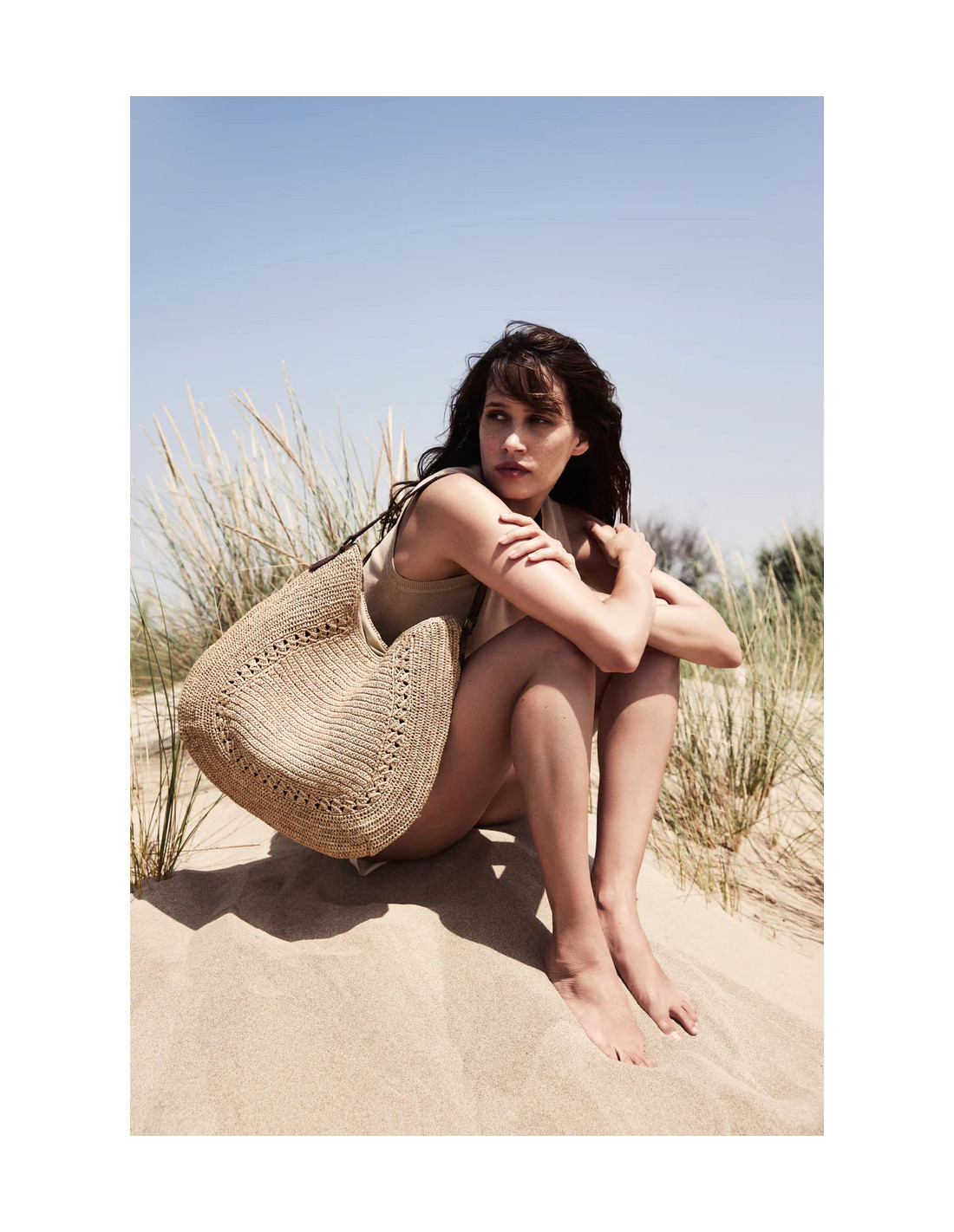 Sac hobo en raphia naturel de taille moyenne coloris DARK Tea