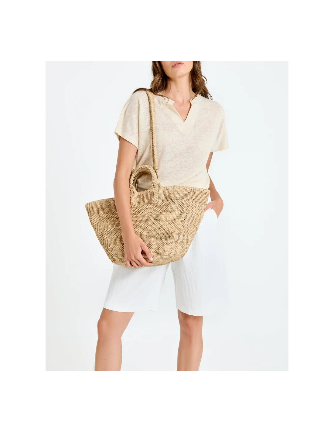 Sac panier en raphia naturel, coloris Tea