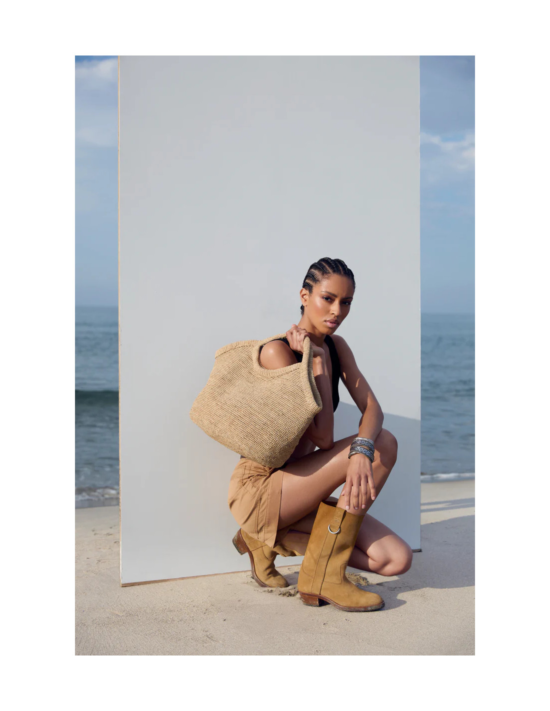 Sac en raphia naturel coloris Tea au design épuré