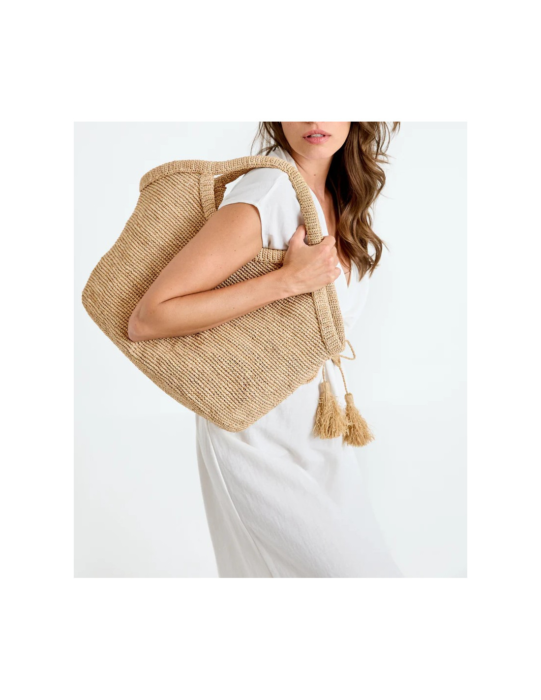 Sac en raphia naturel, coloris Tea