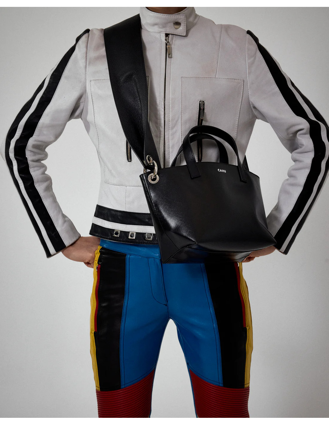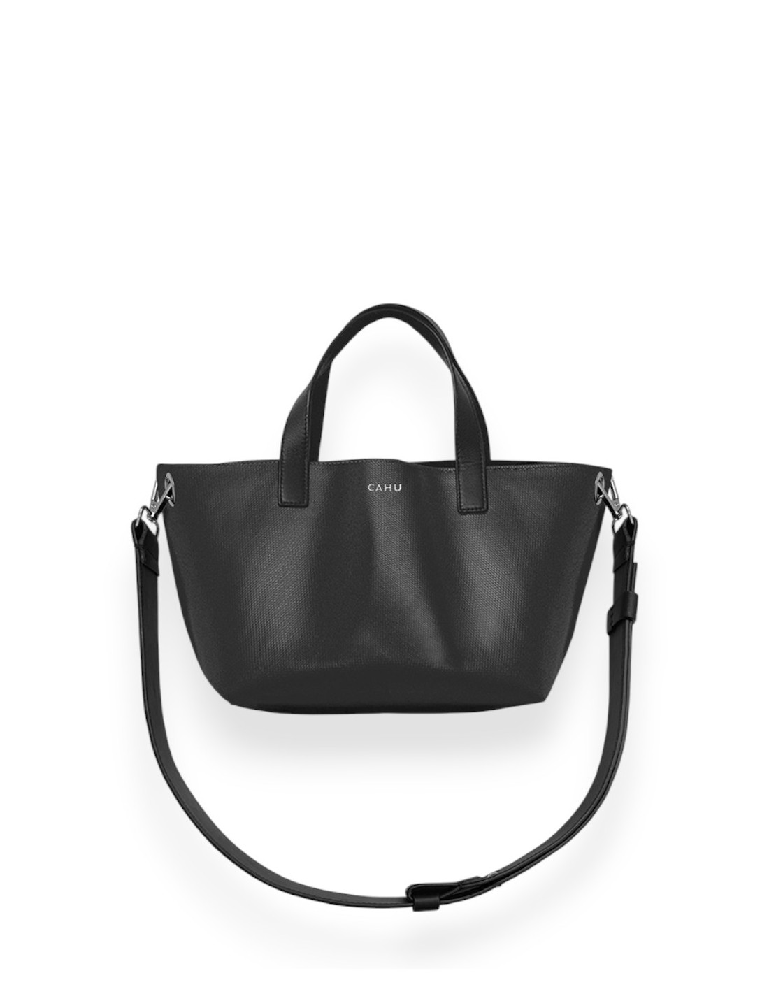 Poignées courtes et bandoulière en cuir grainé de vachette