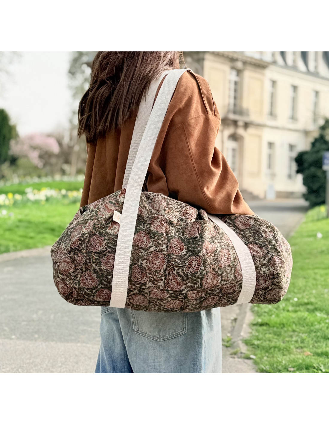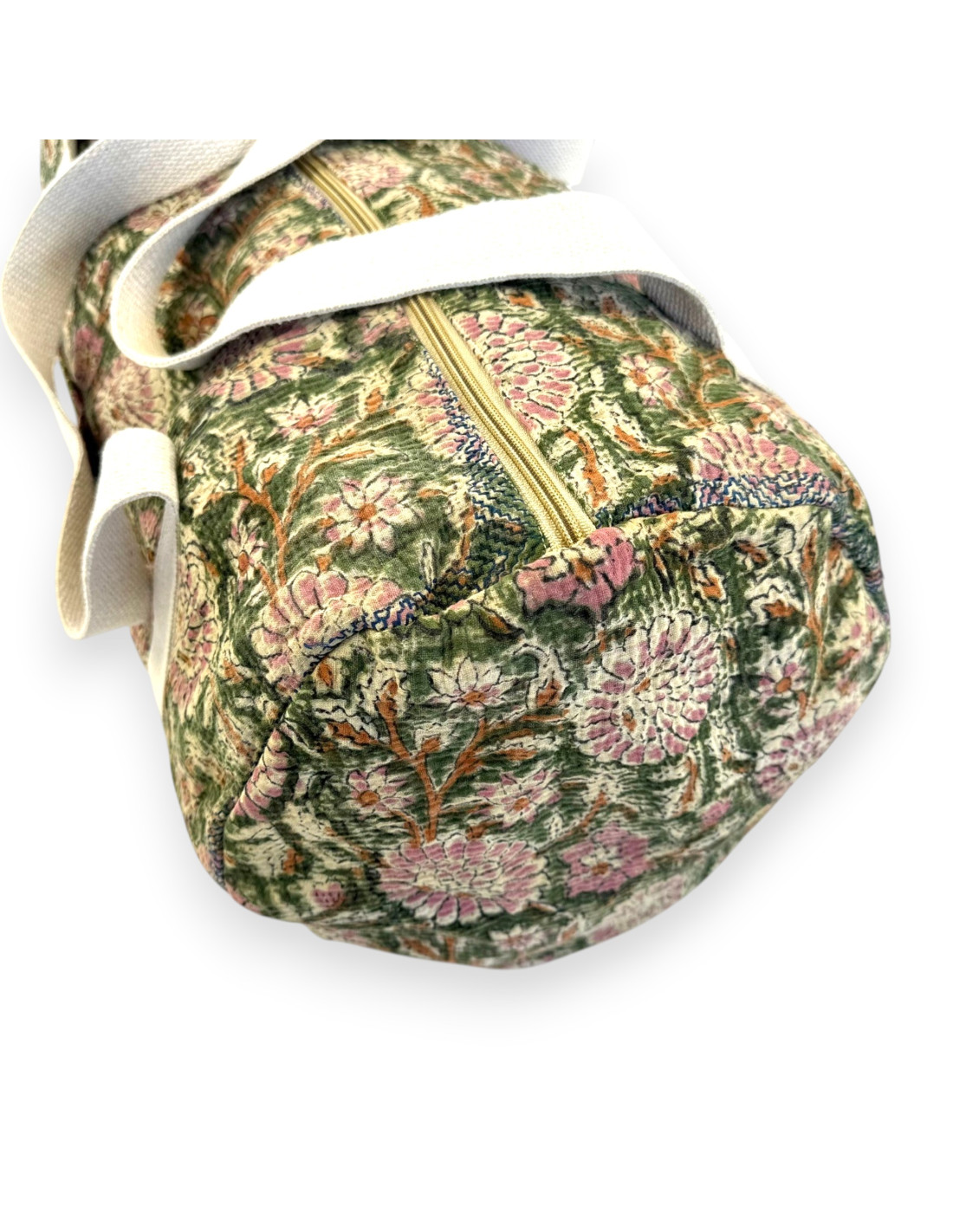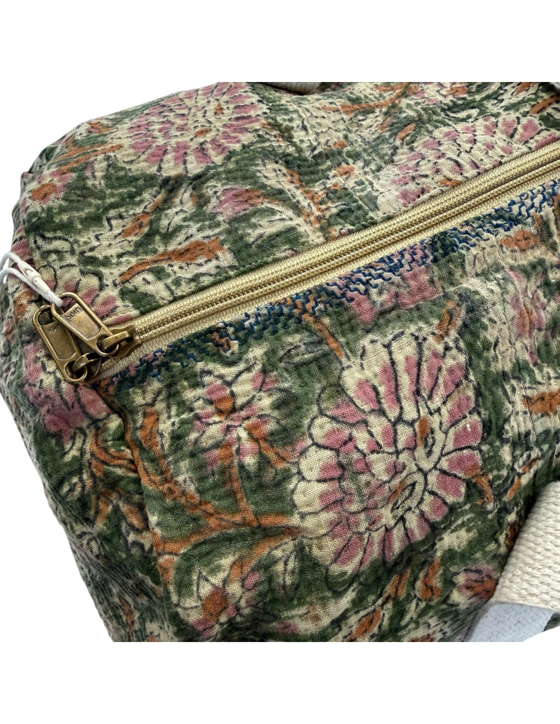 Sac week-end en tissu indien Kantha Bagru, confectionné à partir de coton recyclé.