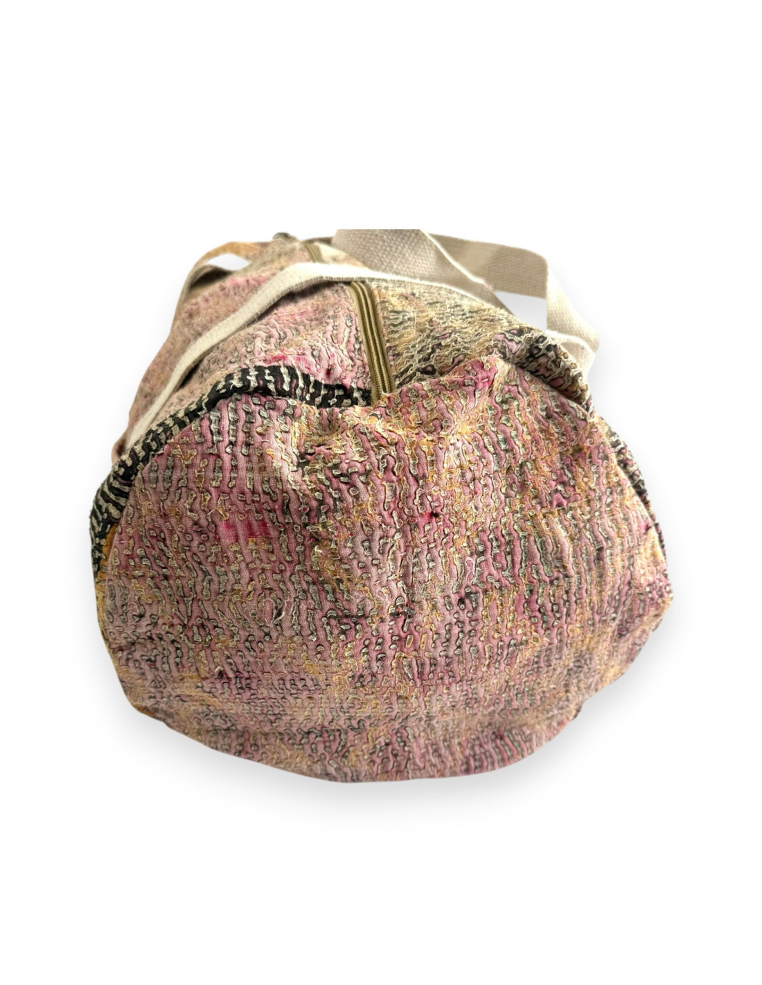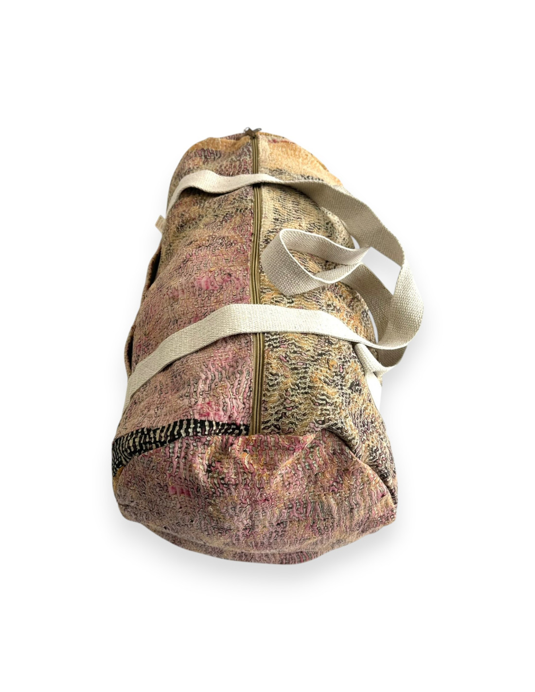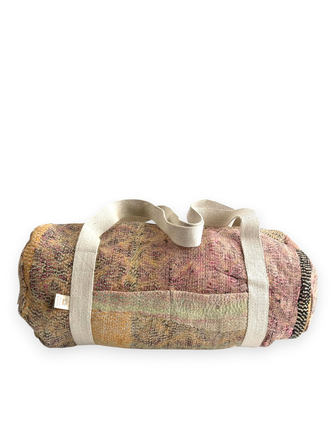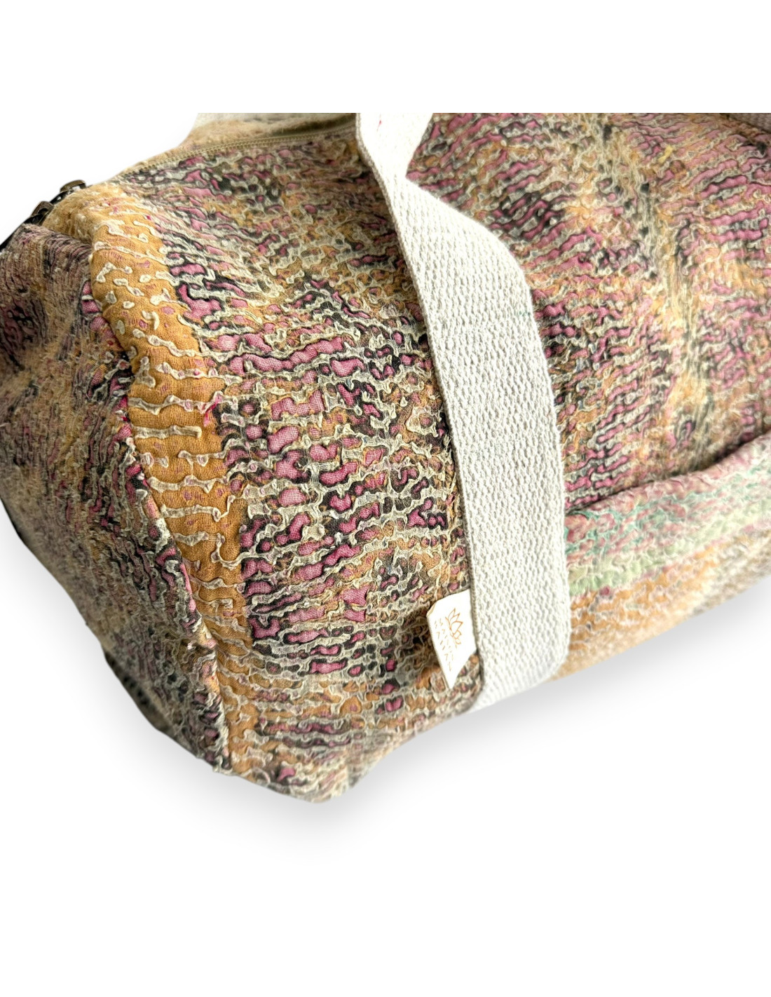 Sac week-end en tissu indien Kantha Bagru, confectionné à partir de coton recyclé.