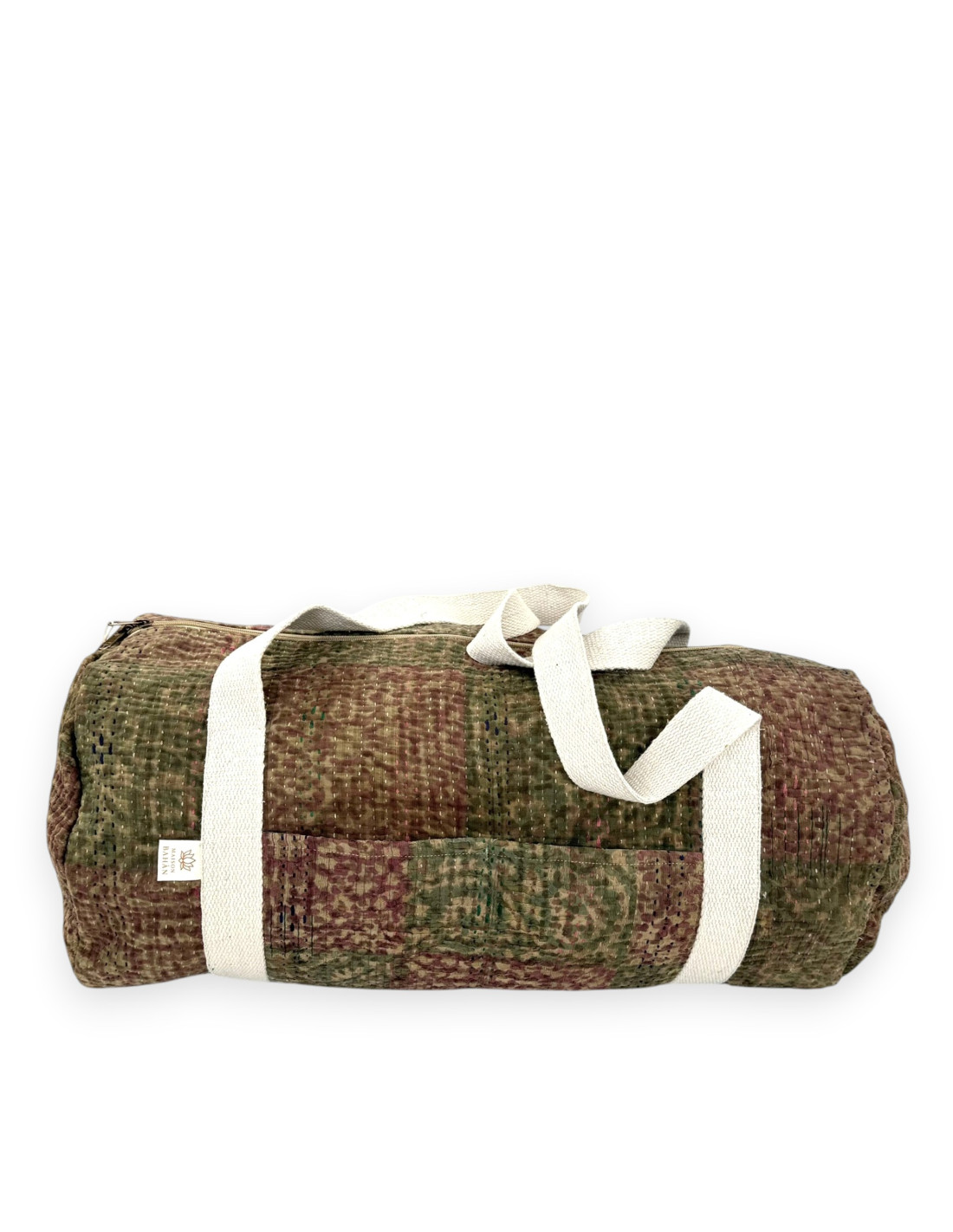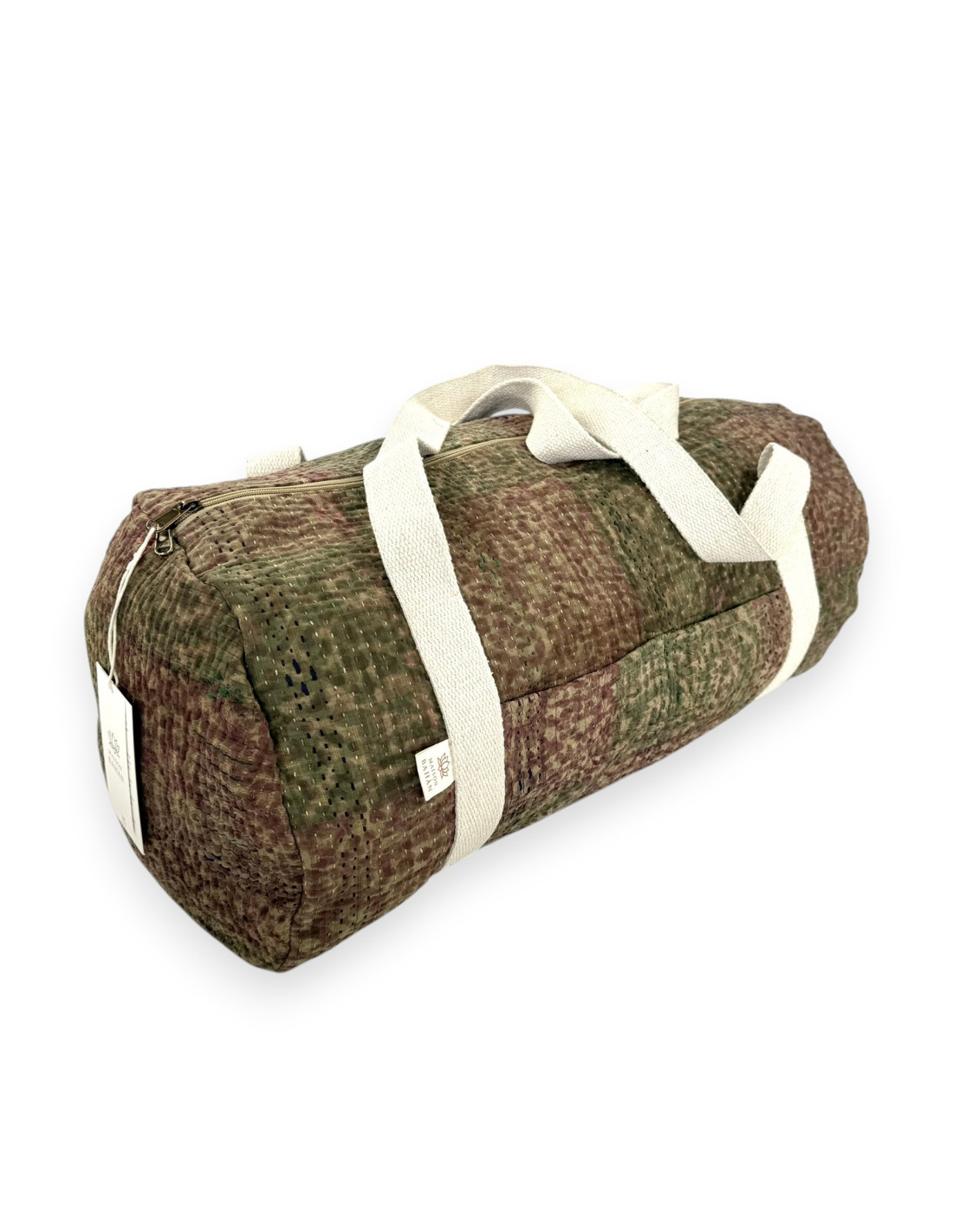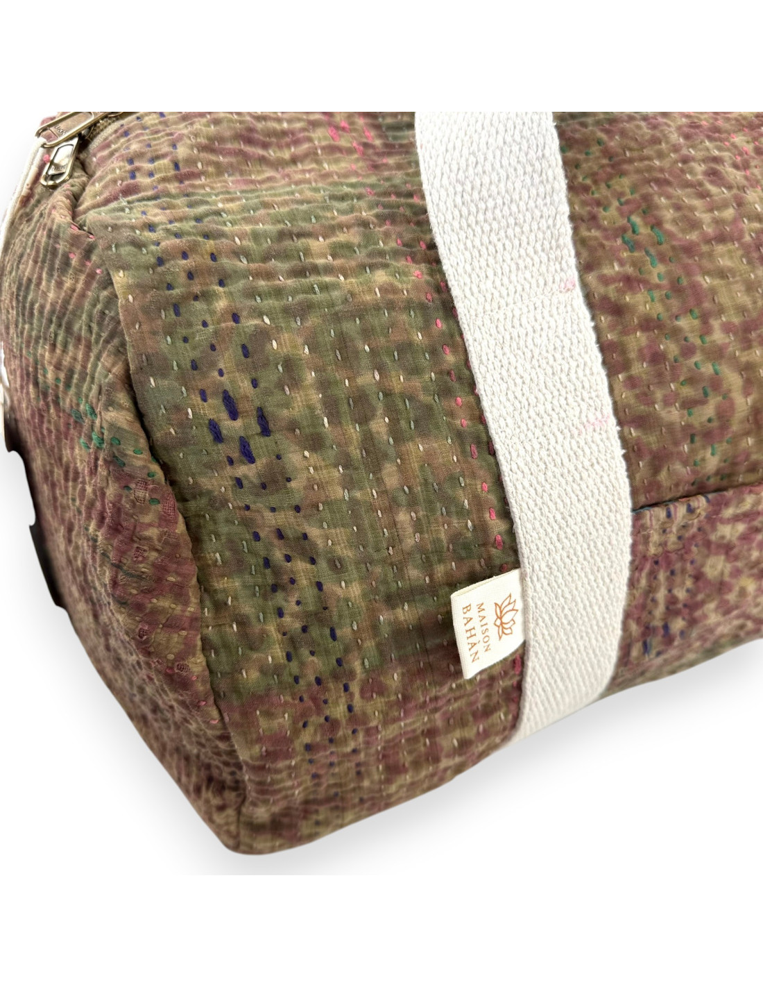Sac week-end en tissu indien Kantha Bagru, confectionné à partir de coton recyclé.